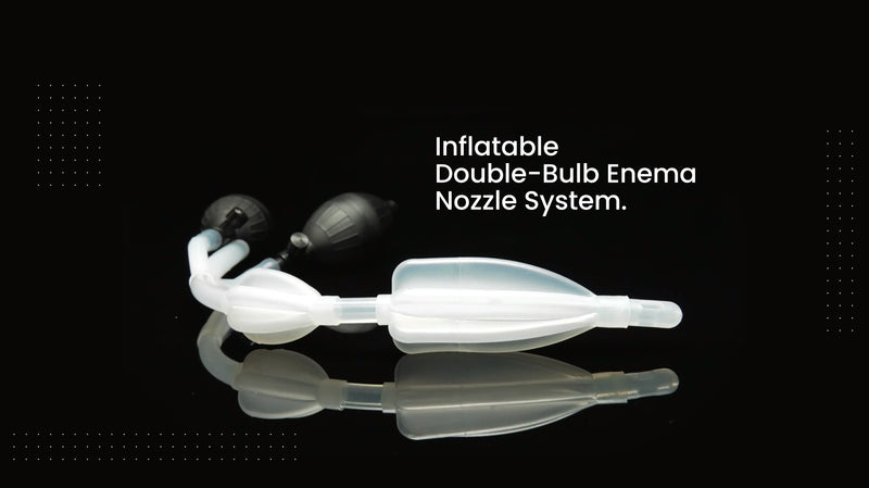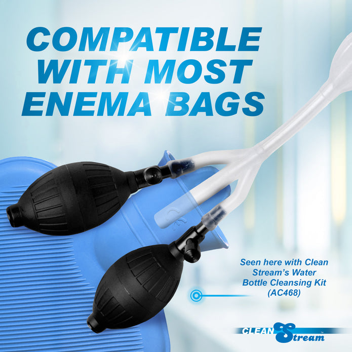 Make enema play more enjoyable with the CleanStream Silicone Double Bulb Nozzle. Each bulb is controlled by its own pump, allowing you to vary the size of each as desired. Simply insert the first bulb into your anus and leave the second one out. Doing this will create a seal, ensuring that any fluid inserted (up to 3500ml) will remain inside until you wish to let it out. Get cleansed and a good fill with this great new enema piece!