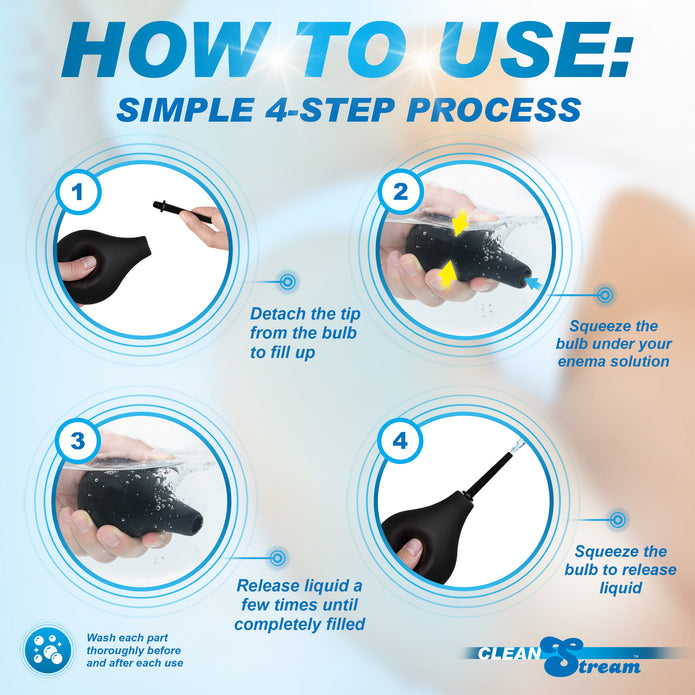 Ensure your cleansing session is comfortable and efficient with this easy to use Enema Bulb. Simply fill the bulb with liquid, screw on the thin tip nozzle, insert anally or vaginally, and squeeze to release for an experience that is not only pleasurable but leaves you clean and refreshed! The nozzle is sturdy and designed with an extra thin profile for easy insertion. The bulb is body-safe and holds up to 225ml of liquid.
