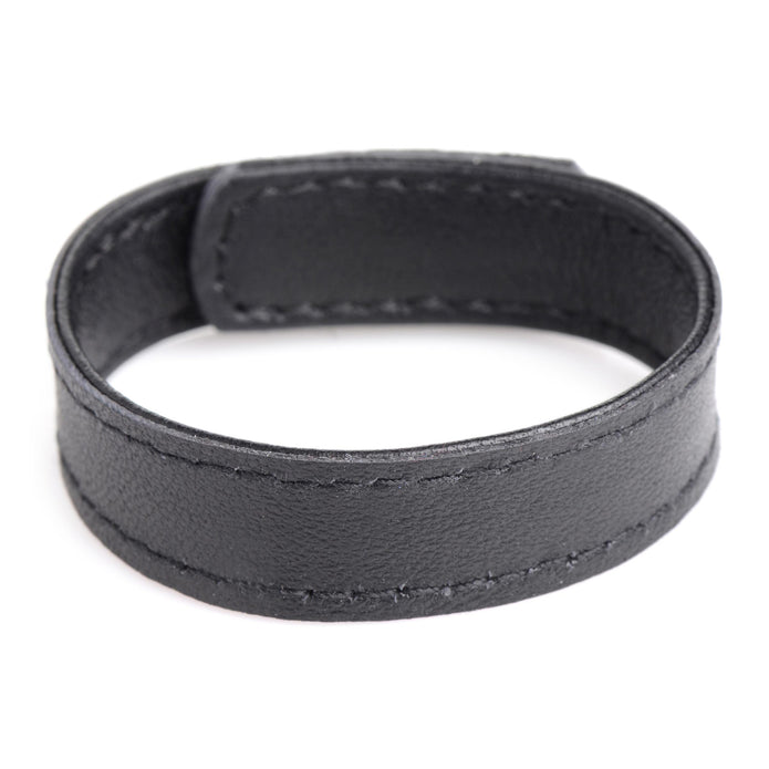 This cock ring is simple and easy to use. Perfect for beginners starting out, there’s no worry about abrasive metal, sizing, or getting a size that’s too small. The leather strap wraps around the base of the cock and has a velcro closure.