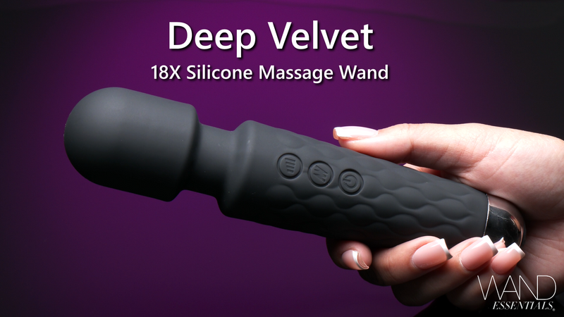 Powerful vibration is at its finest with the Deep Velvet massage wand, a silicone rechargeable that has everything you have been looking for. With 9 incredible thrumming intensities and 9 exciting throbbing patterns, you have a total of 18 setting to choose from to find your pleasure peak. When in use, the buttons will light up so that this wand is easy to use, even in the dark. Premium silicone makes this massager velvet soft, as well as phthalate-free and non-porous, perfect for a comfortable and body-safe sexual experience. This waterproof vibe is easy sanitize with soap and water, but should not be used with silicone lubricant.