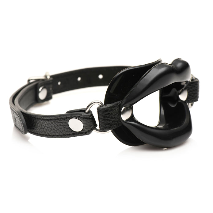 Excellent for sissy and bimbo play, this humiliating accessory will remind your partner that their primary function is oral sex! Stuff their mouth with the silicone gag, either behind their teeth or just behind their lips. They will be unable to speak, just the way you like them! Furthermore, their mouth will be held open, giving you full access to it! The leather strap that wraps around their head is adjustable to fit most sizes.