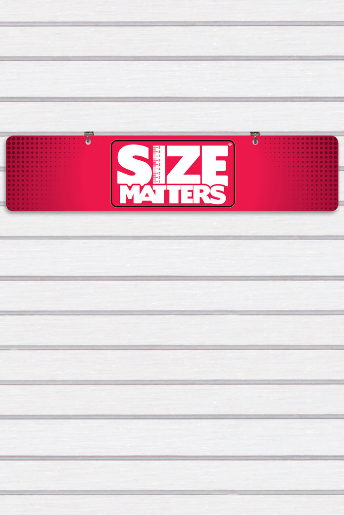 Cap off your Size Matters display with an attractive and functional planogram banner. Printed on heavy cardstock, this display sign will let your customers know what they are buying and where to go to get more! Keep your store looking modern and inviting with this comprehensive signage.